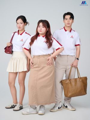 Đầu tiên là về kiểu dáng, mẫu áo đồng phục may theo form polo Regular Fit trẻ trung. Thiết kế cổ bẻ kiểu đức may từ chất liệu vải bo dệt giúp định hình form dáng của trang phục, tăng thêm vẻ lịch sự, chuyên nghiệp. Tay áo ngắn có bo viền tạo cảm giác gọn gàng, năng động.